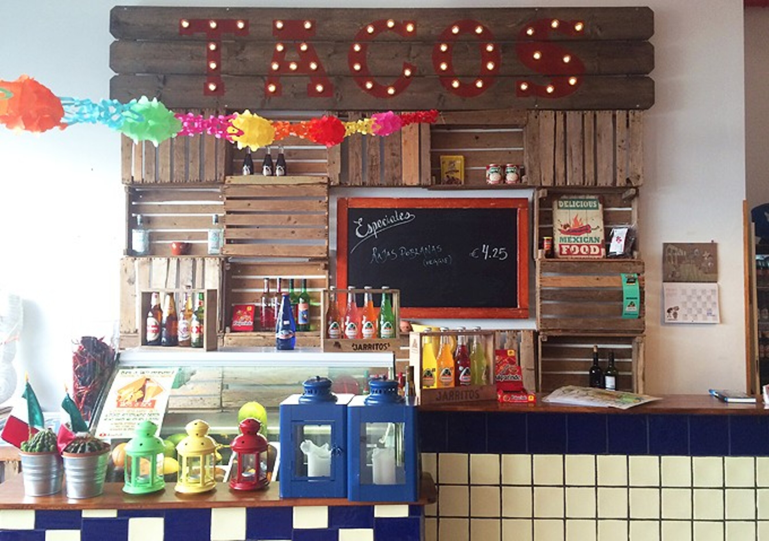 A place where tacos, burritos, and other mexican dishes are made and sold.